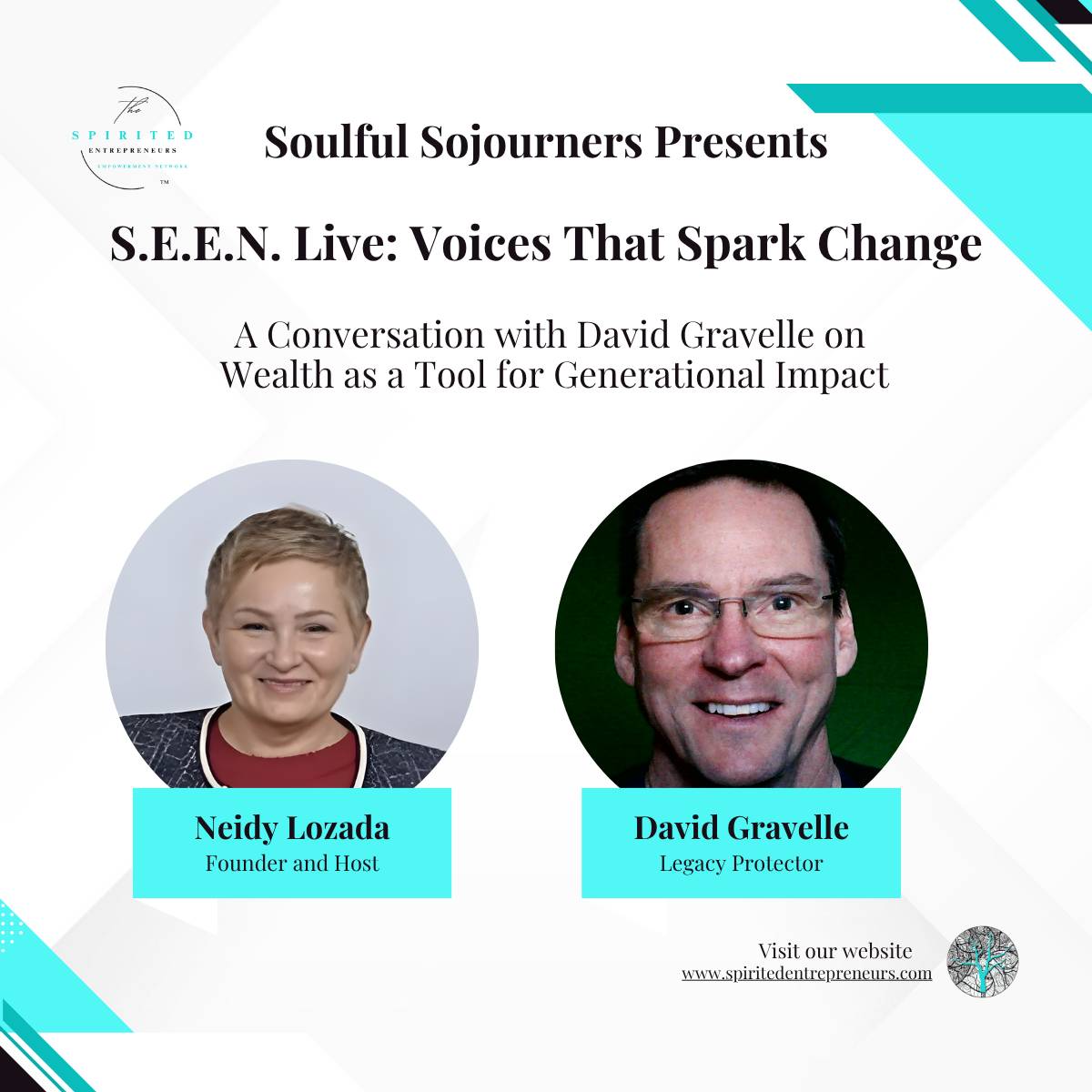 An invitation to join the upcoming S.E.E.N. Live: Voices That Spark Change - A Conversation with David Gravelle on Wealth as a Tool for Generational Impact.